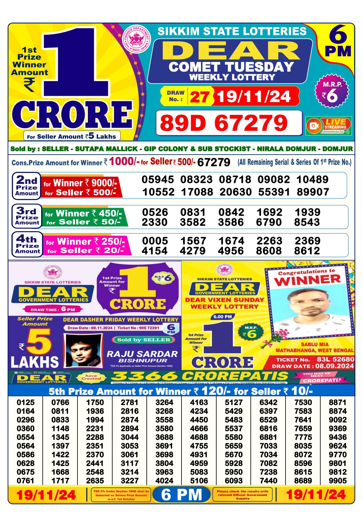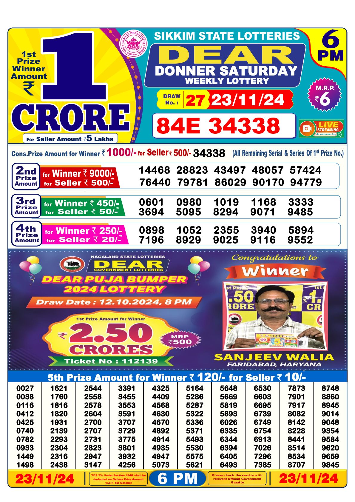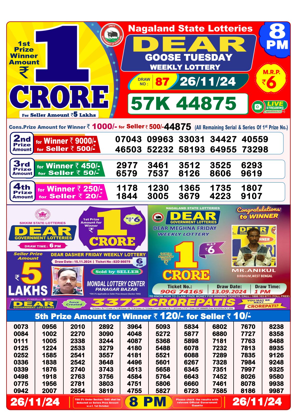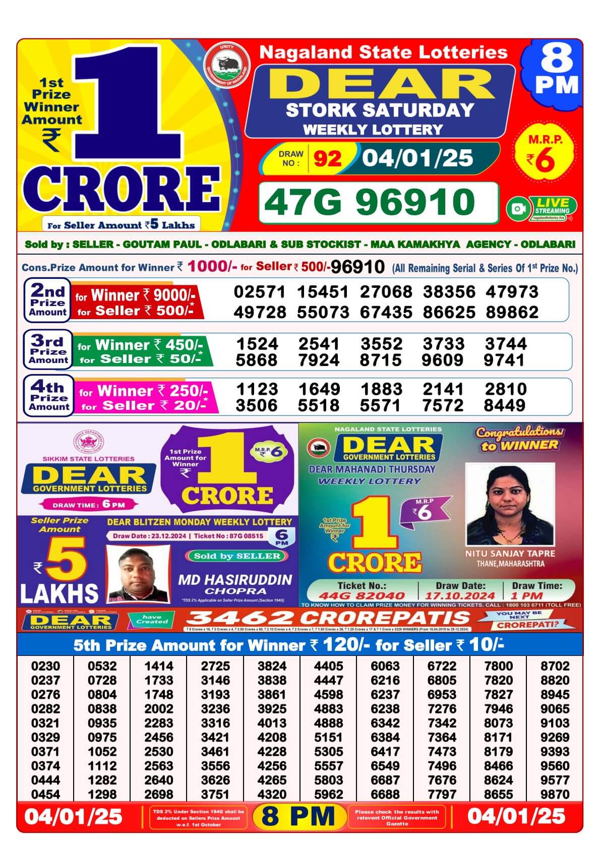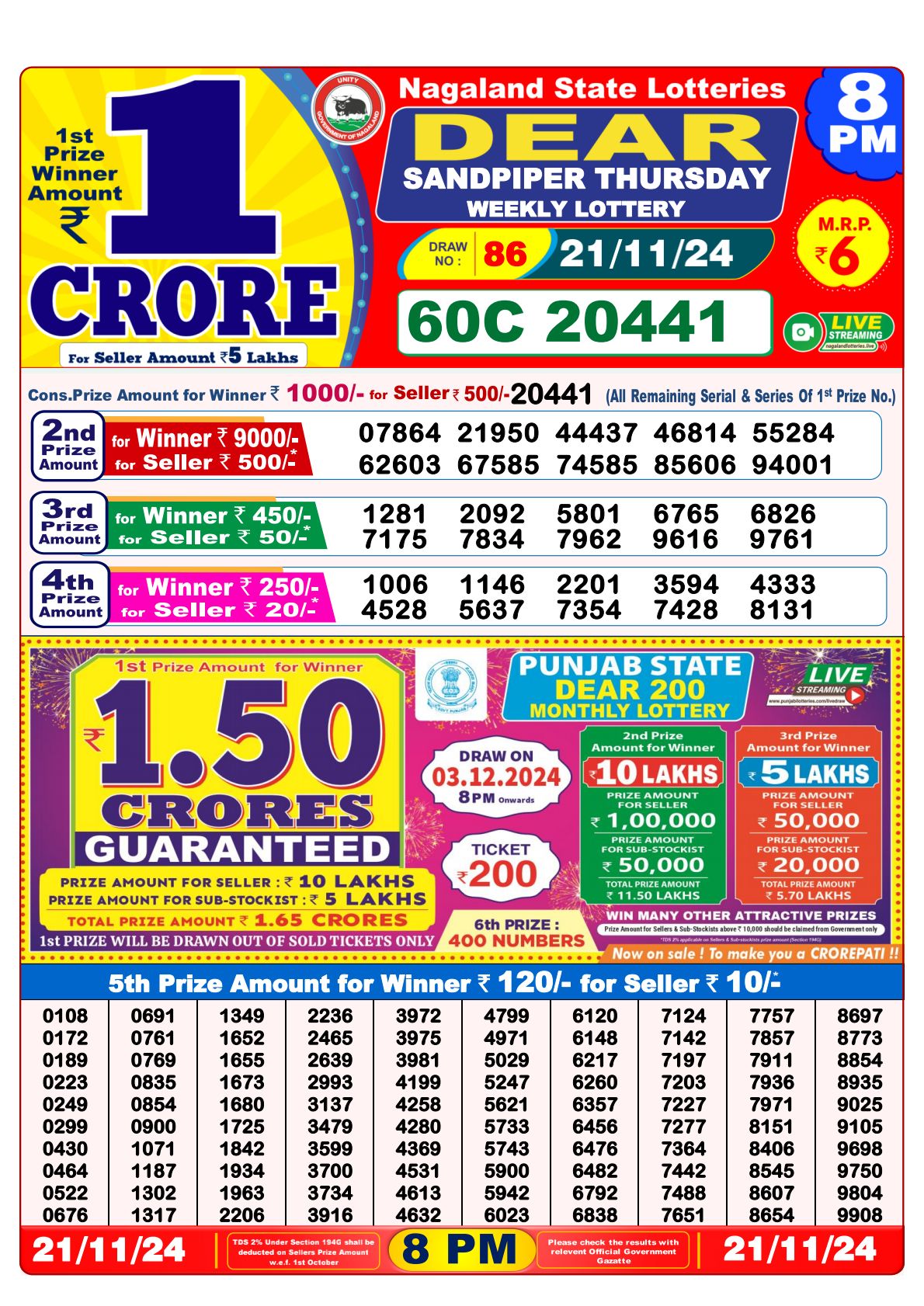 We Are Providing The Lottery Results Collected From Various Sources On The Internet. Our site is Helping to Get Fast Results only!. We Are Not Associated with Any Lottery Business or Gamblers. We Are Not Responsible For Any Fraud or Scam. We Respect All Country Rules/Laws.
