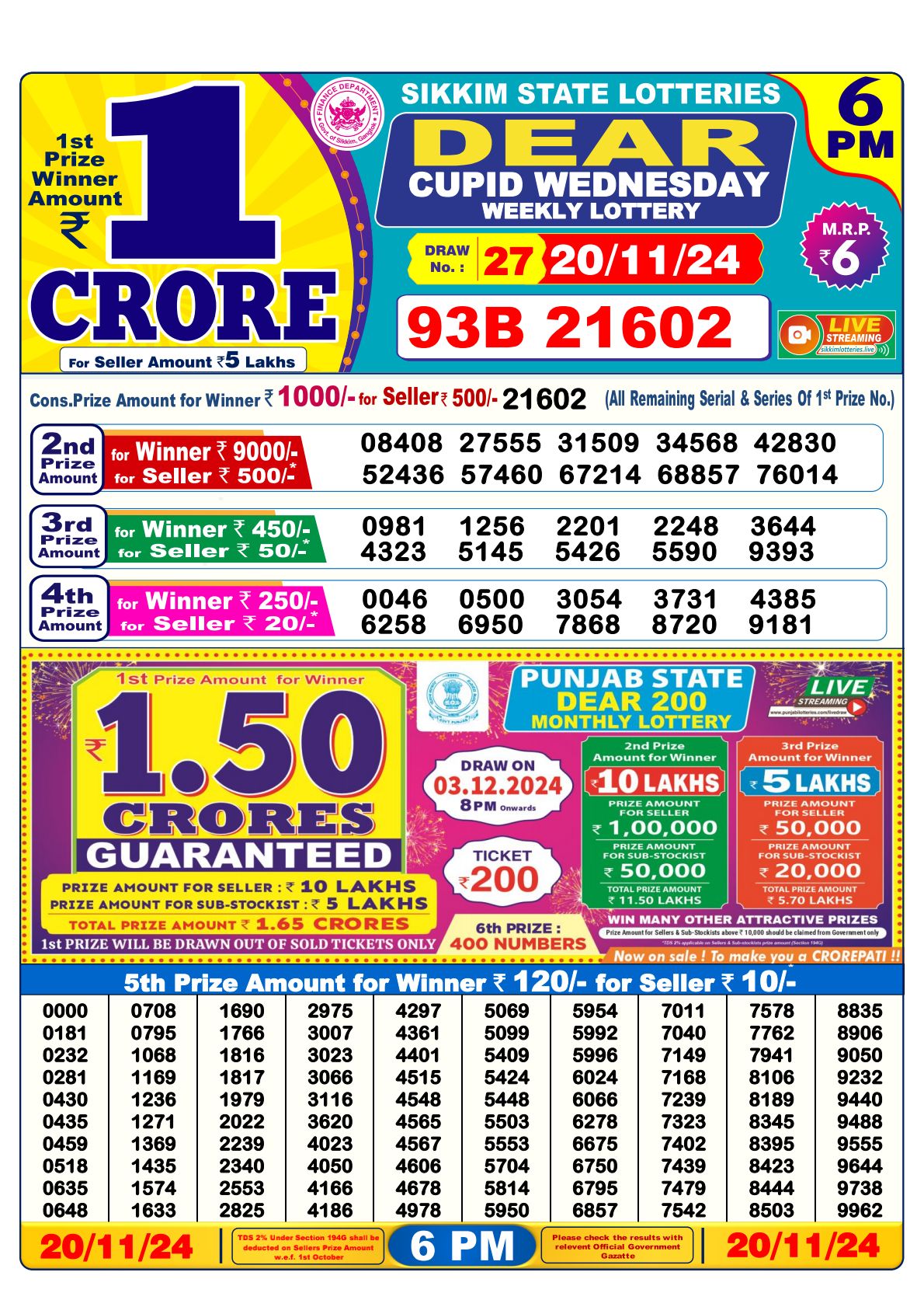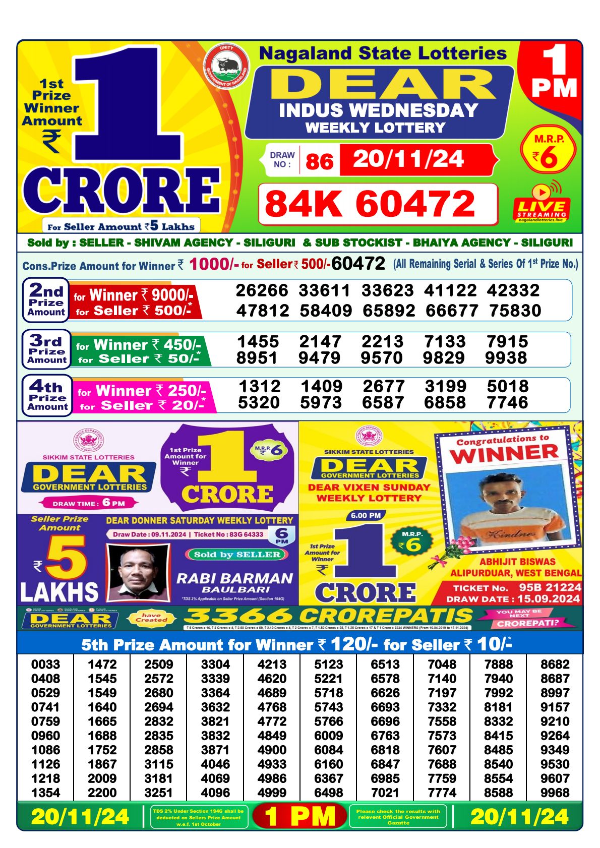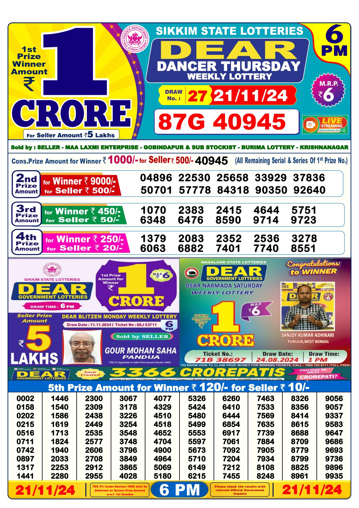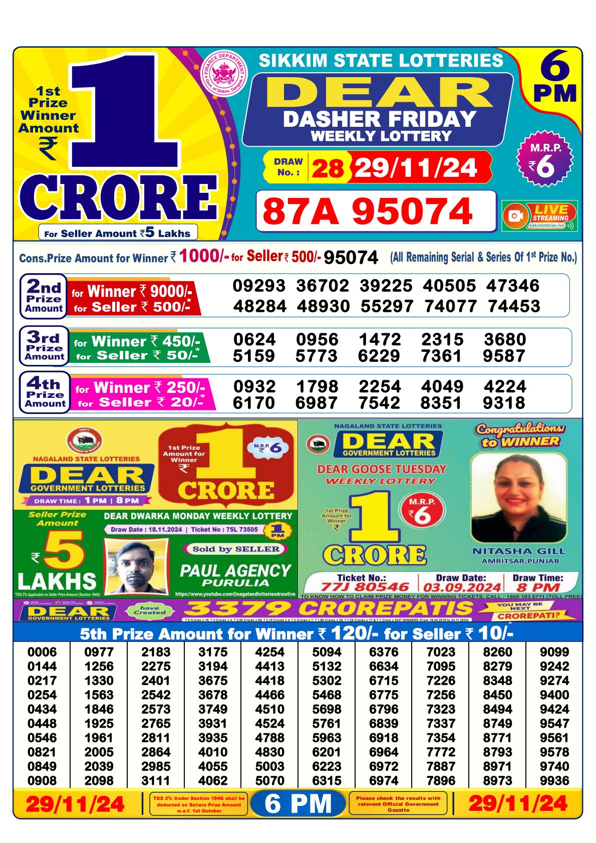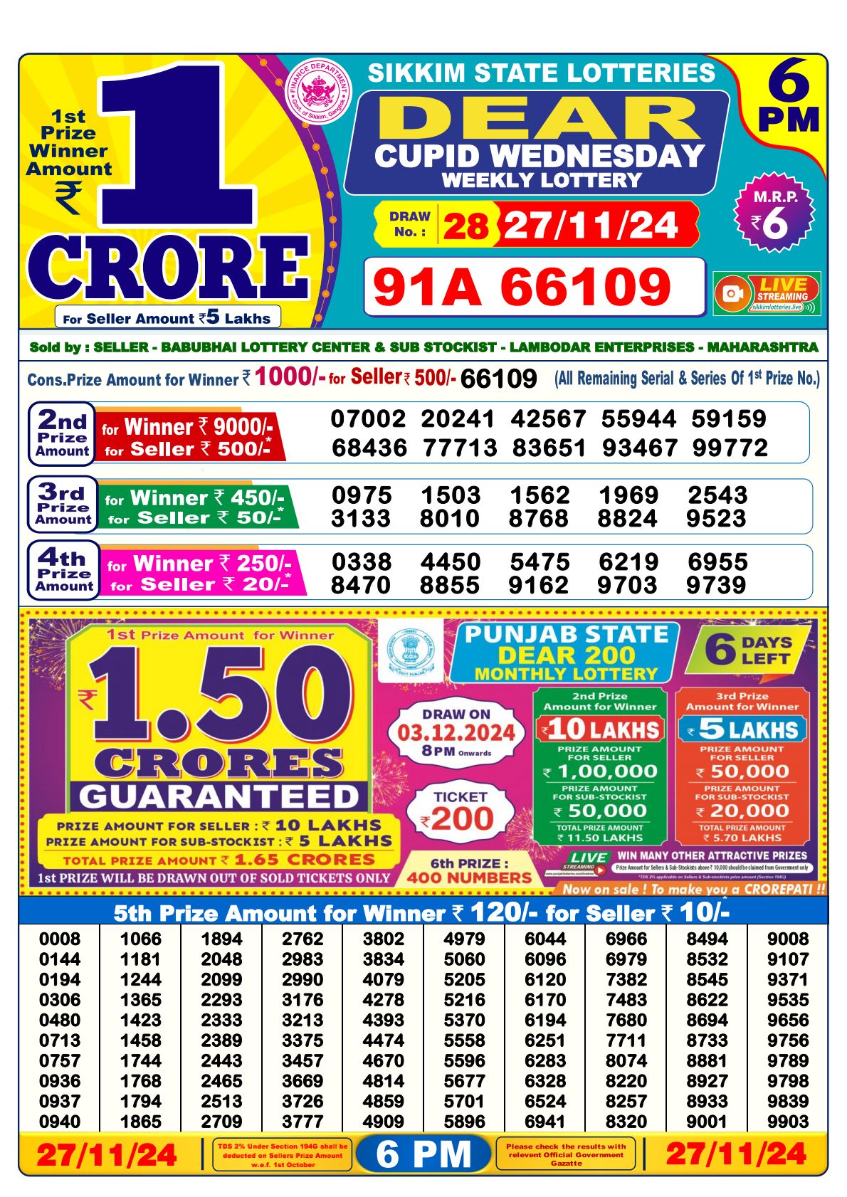 We Are Providing The Lottery Results Collected From Various Sources On The Internet. Our site is Helping to Get Fast Results only!. We Are Not Associated with Any Lottery Business or Gamblers. We Are Not Responsible For Any Fraud or Scam. We Respect All Country Rules/Laws.