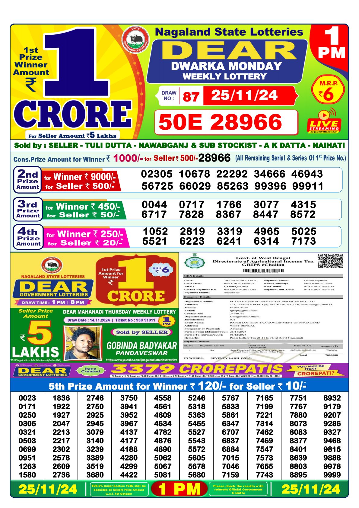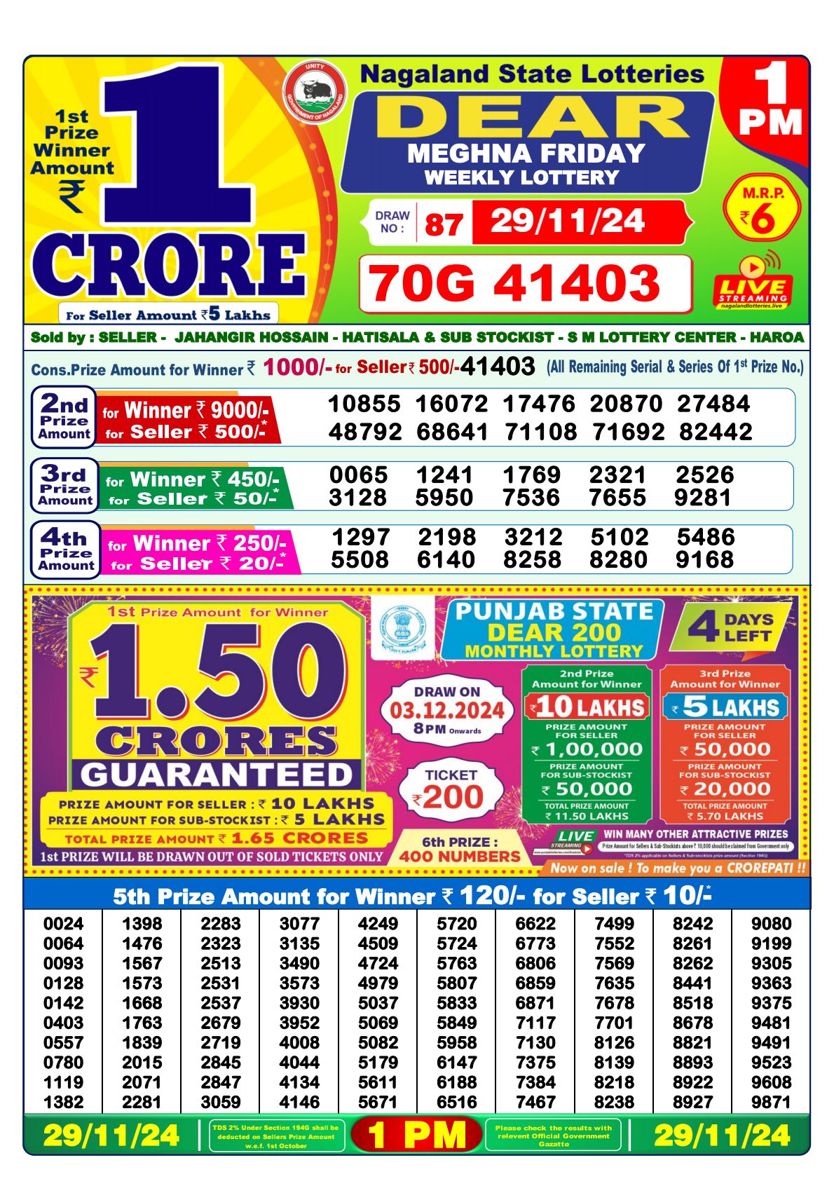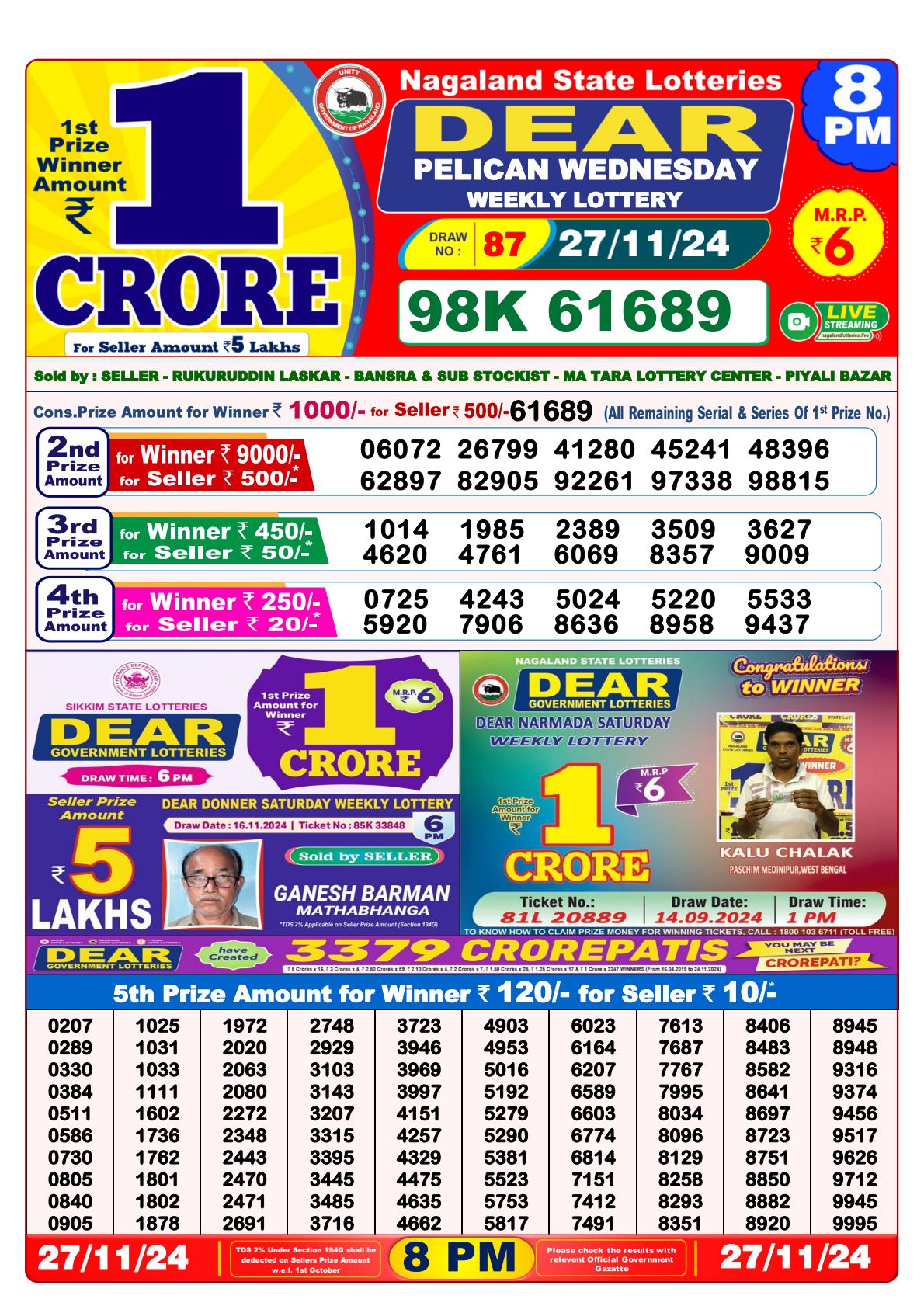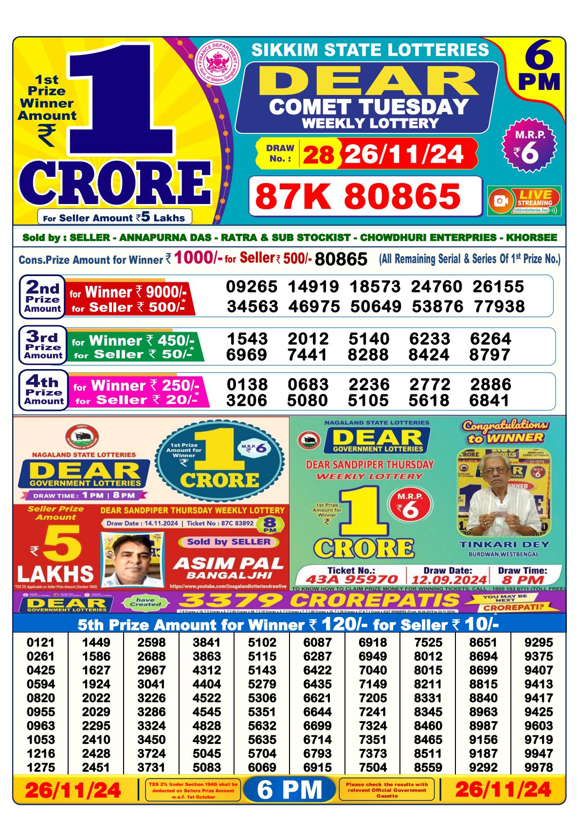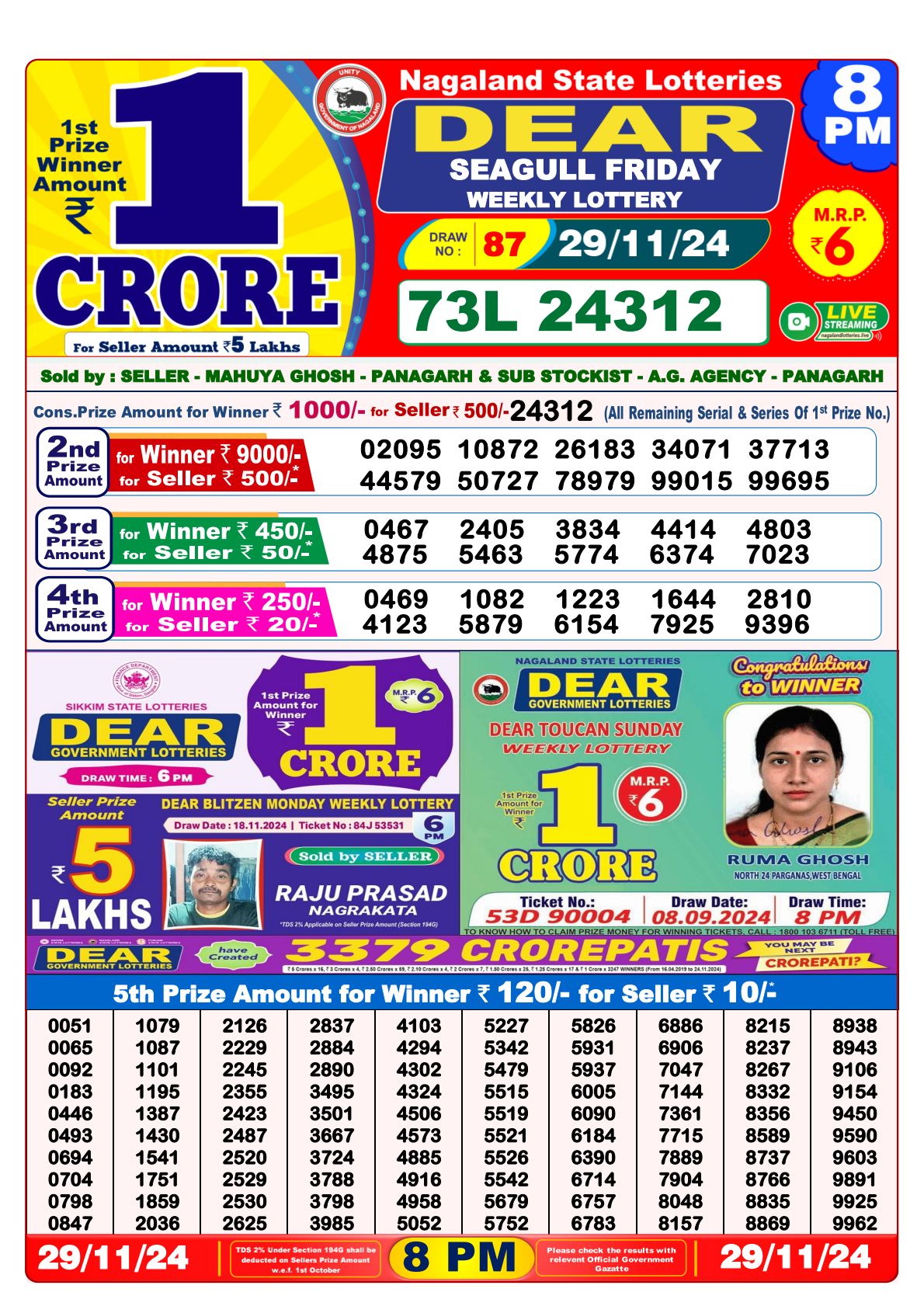 We Are Providing The Lottery Results Collected From Various Sources On The Internet. Our site is Helping to Get Fast Results only!. We Are Not Associated with Any Lottery Business or Gamblers. We Are Not Responsible For Any Fraud or Scam. We Respect All Country Rules/Laws.